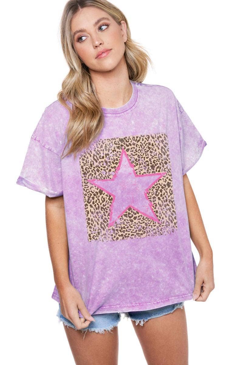VINTAGE LEOPARD STAR GRAPHIC, PREMIUM COTTON, BOYFRIEND FIT, ROLLED CUFF, SNOW-DYED TEE